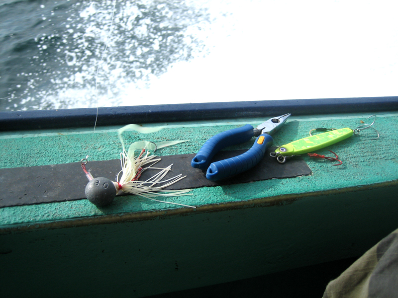 ジグ自体は軽めの奴なので太糸巻いているジギング用リールでは何とも底取りに苦労します。