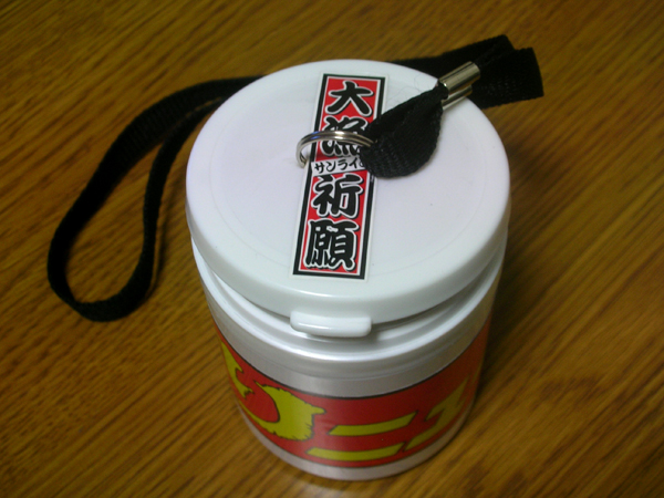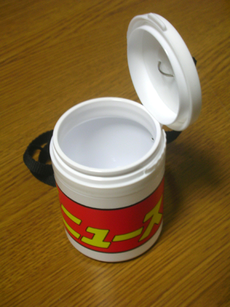 コレをベースに蓋に穴を開けリングを通し、家に転がっていたネックストラップの残骸を付け、